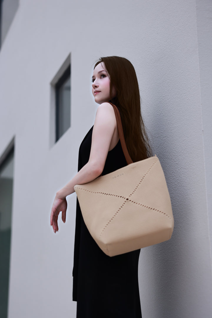 SEUSE Foldable Handbag Series | A woven lightweight foldable minimalist handbag suitable for both business and casual use. It is an eco-friendly and fashionable daily essential item bag made from recycled plastic bottles, featuring a spacious main compartment and sturdy durable shoulder straps for comfortable carrying.