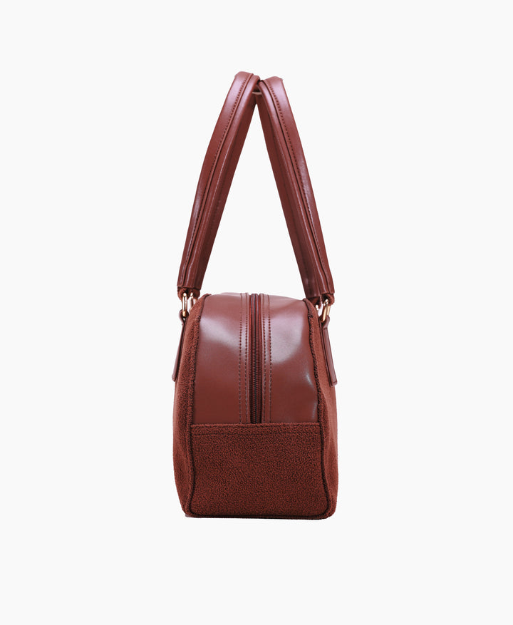 [SEUSE] New autumn/winter collection: classic, ultra-soft faux-fur textured bowling bags. Specifications: Length: 34 cm; Height: 19 cm; Width: 14 cm This lightweight, woven bowling bag combines elegance with functionality perfectly, resulting in a luxurious and stylish bag with a distinct, well-defined design. The bag is made from durable recycled materials, boasts an attractive shape, and is adorned with exquisite stitching details.
